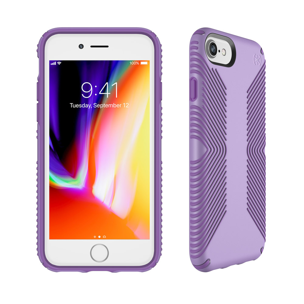 Slim, two-layer Speck Presidio Grip Series case. Military tested, 10 foot drop protection.